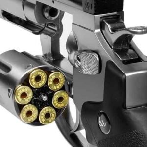 Dan Wesson line is known as one of the most reliable revolvers of air pistol class. The cylinder swings open to reveal six shells that can be emptied with the ejector rod.