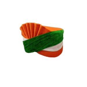 =>A Trendy Indian Tricolor Handstitched Cotton Cloth Coated Safa/Pagri/Turban & Satin Stole