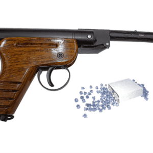 It’s an Indian-made Single-shot .177 Caliber / 4.5 mm Air pistol, that uses .177 pellets as ammo.